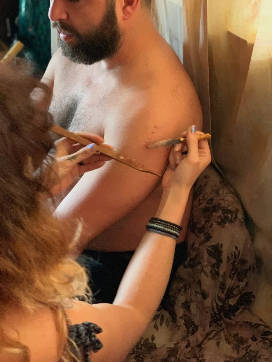 I have been blessed to visit and stay with the Matsés tribe of Peru to be educated and initiated into serving kambo. The wisdom and love they share is a priceless gift that I am honored to pass along to others. The journey to learn was a life changing experience giving more reverence to the mystery of the human body and the mother earth with the power of healing through them both. Utilizing the potent powers of earth and star medicine, I call upon the ancestors and guides to assist in the process of remembering truth, offering my story as medicine and receiving yours in turn.